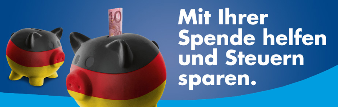 Spenden Sie mehr als 200,- €, so vergessen Sie bitte nicht, im Verwendungszweck neben „Spende“ noch Ihre vollständige Adresse anzugeben, damit wir Ihnen die vom Finanzamt für diesen Fall geforderte Zuwendungsbescheinigung zukommen lassen können.